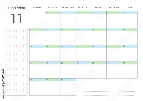 calendar, november, template, schedule, planner, 2022, 11, plan, note, diary, memo, illustration, day, weekly, daily, monthly, month, weekday, date, monday, tuesday, wednesday, th, friday, sunday, vector, grid, print, time, document, form, paper, line, space, design, art, graphic, digital, lifestyle, background, printable, desk calendar, clean, simple