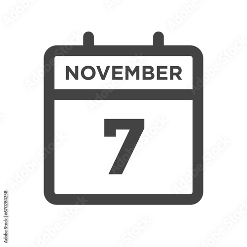 november, 7, seventh, 7, calendar, icon, design, appointment, date, day, deadline, interface, user, simple, symbol, black, white, isolated, new, number, 2021, 2022, 2023, 2024, 2025, line, outline