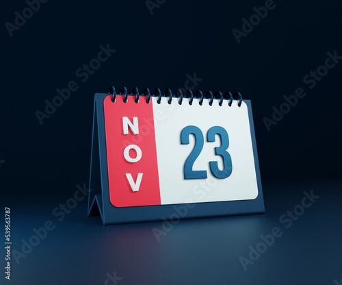 November Realistic Desk Calendar Icon 3D Illustration Date November 23