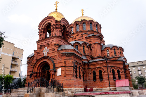Novosibirsk, Russia, August 2022: Alexander Nevsky Cathedral in summer