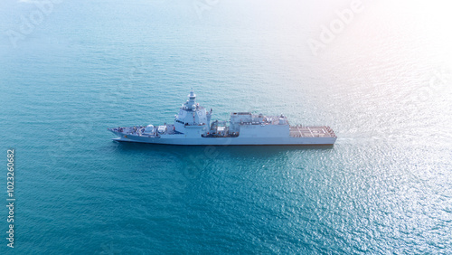 Nuclear war ship, Navy ship, Military navy. nuclear carrier running in the ocean.
