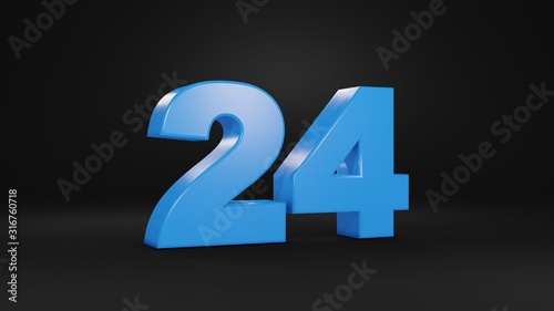 Number 24 in blue on black background, 3D illustration