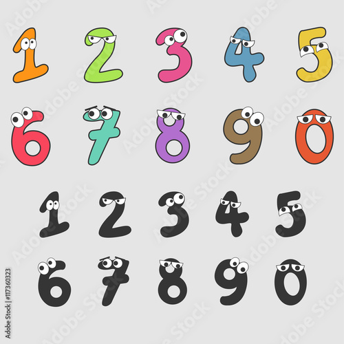Number Cartoon Has Both Eyes With Colorful And Mood - Vector