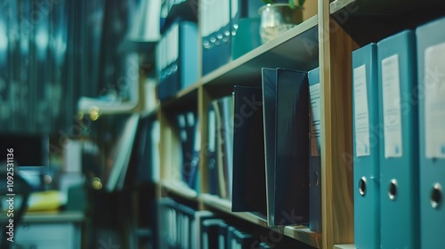 Number of folders standing on the shelf in the office