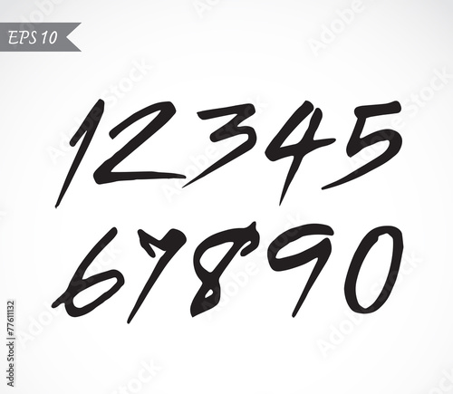 Numbers 0-9 written with a brush on a white background