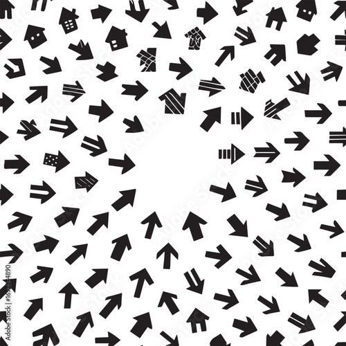 Numerous black arrows pointing inwards towards a central empty white space on a white background