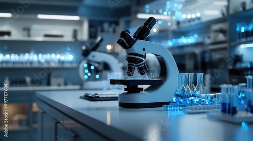 Nurse symbol prominently displayed on a blue lab bench, with a clean and professional background featuring organized scientific instruments and a spotless laboratory environment.