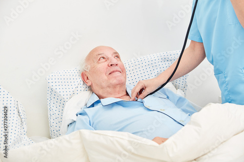 man, patient, old, ill, sick, nursing, hospital, exam, stethoscope, listening, controlling, senior, senior citizen, respiration, bedridden, nursing home, woman, auscultation, diagnostic, nurse, assistance, bed, lie, clinic, health, caregiver, senior, retirement home, treatment, care, retiree, pensioner, profession, home, home, people