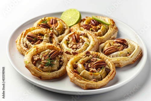 isolated, white, plate, background, savoury, dessert, epicure, fine dining, artisanal, deliciously, indulgence, delicious, finger food, walnut, baked goods, pastry, baking, flavorful, pecan