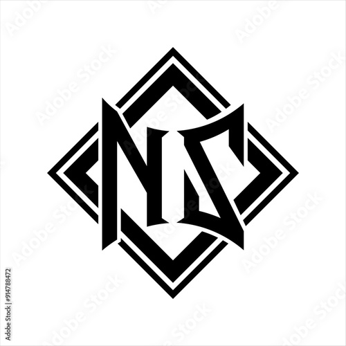 NZ Letter logo with abstract shield shape with square black outline on white background design