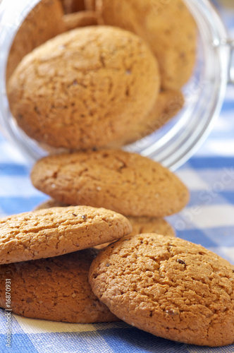 baked, biscuit, blue, brown, chequered, closeup, cookie, dessert, domestic, food, glasses, heap, jar, kitchen, nobody, oat, oatmeal, pastry, rustic, scattering, snack, still life, sweet, unhealthy