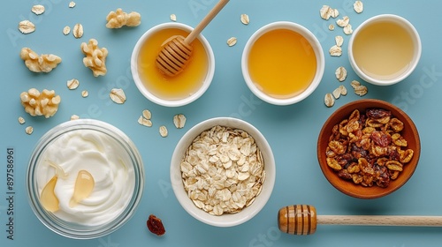 Oats, honey, yogurt, face scrub ingredients, still life, skin care