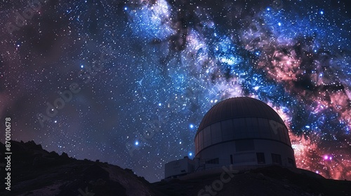 observatory, milky way, star, night, sky, galaxy, astronomy, space, science, cosmos, universe, telescope, dark, blue, pink, purple, mountain, rock, landscape, nature, astrophotography, cosmic, starry, night sky, celestial, beautiful, awe, wonder, mystery, exploration, discovery, cognition, research, observing, studying, researching, learning, powerful, grand, awesome, inspiration