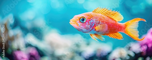 Ocean acidification concept. A vibrant orange fish swimming gracefully in a colorful coral reef.