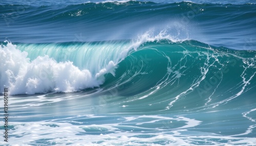 Ocean Currents A dynamic representation of ocean waves blending shades of blue and turquoise, with foam and movement captured vividly.