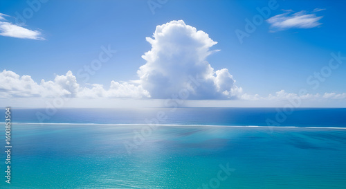 ocean, sea, cloud, sky, water, blue, horizon, landscape, scenery, nature, travel, tropical, seascape, coast, shore, vacation, clear, daylight, open, calm, turquoise, summer, bright, sunny, aerial, view, serene, peaceful, relaxation