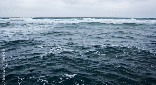 Ocean waves under a cloudy sky, a serene seascape.