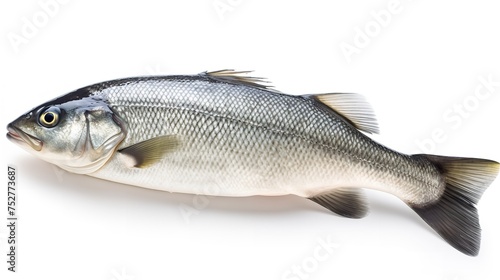 Oceanic Freshness: One Raw Seabass Fish Isolated on White