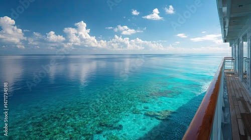 Oceanic view from a cruise ship's deck, showcasing crystal-clear water and the peaceful expanse of the sea