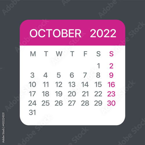 October 2022 Calendar Leaf - Vector template graphic Illustration