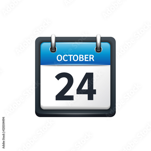 October 24. Calendar icon.Vector illustration,flat style.Month and date.Sunday,Monday,Tuesday,Wednesday,Thursday,Friday,Saturday.Week,weekend,red letter day. 2017,2018 year.Holidays.