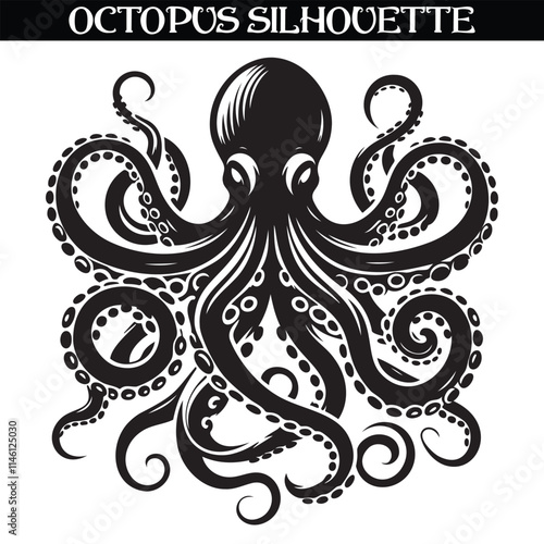 Octopus silhouette vector. Sea animal vector.