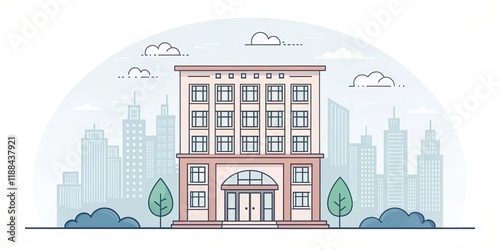 office building with city scape, ancient retro illustration background