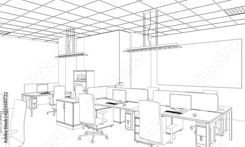 office contour visualization, 3D illustration, sketch, outline