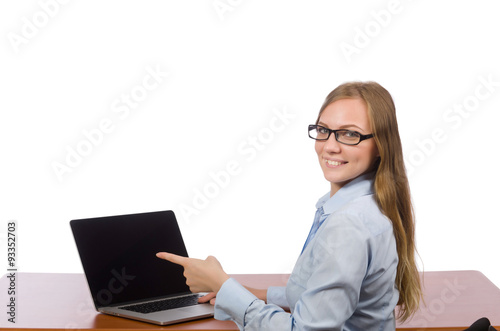 accountant, assistant, background, beautiful, beauty, boss, business, businesswoman, caucasian, cheerful, chief, company, computer, correspondence, demonstrating, direction, director, entrepreneur, eyeglass, girl, isolated, job, lady, laptop, management, manager, model, office, pointing, presenting, pretty, principal, secretary, showing, smiling, spectacle, table, texting, typing, vacancy, white, woman, workaholic, working, workplace