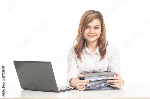 laptop, woman, computer, business, businesswoman, young, isolated, office, notebook, white, cyberspace, beautiful, student, working, person, happy, work, people, technology, sitting, smiling, portrait, beauty, desk, smile