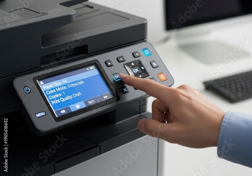 printer, office, control, panel, buttons, hand, press, vector, illustration, graphic, design, ink, level, workspace, modern, professional, technology, equipment, business, flat, scalable, art, digital, device, machine, interface, screen, touch, clean, bright, minimal, corporate, setting, management, document