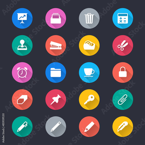 Office supplies simple color icons