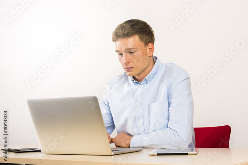 computer, man, office, laptop, business, businessman, person, using, young, working, male, technology, people, happy, casual attire, men at work, work, sitting, typing, desk, smiling, lifestyle, notebook, occupation, home, cyberspace, adult, design, communication, smart, portrait, modern, job, photogenic, table, workplace, student, white, 1, wooden