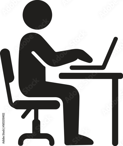Office Worker Using Laptop Icon - Minimalist Design Vector