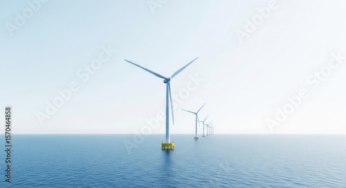 Offshore wind turbines generating clean energy in the vast ocean under a clear blue sky