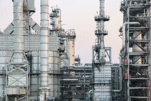 Oil and gas industrial, Oil refinery plant from industry, Refinery Oil storage tank and pipe line steel with blue sky
