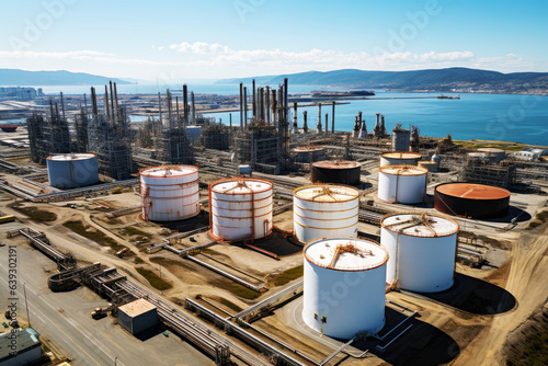 Oil and gas refinery in industrial area, oil and natural gas storage tanks, the refinery industry.