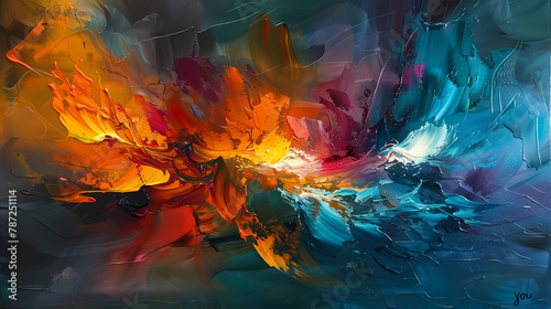 texture, art, paint, design, colours, illustration, creative, yellow, orange, wallpaper, light, sky, blue, abstract, bright, oilpaint, horizon, photo, splash, background, creativity, space, coloured, celestial, explosion, artistic, artwork, dynamic, mix, motion, modern, red, brush, banner
