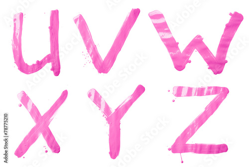 paint, stroke, letter, alphabet, isolated, brush, design, symbol, font, white, art, vignetting, signs, writing, background, character, rudiments, text, artistic, element, hand, ink, drawing, handwritten, learn, handwriting, watercolor, capital, english, texture, type, stain, grunge, collection, topography, set, typographic, education, shape, dripped, v, w, x, pink, cream, yogurt, magenta