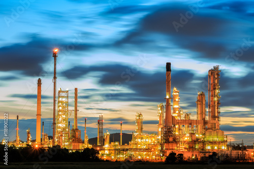 Oil Refinery factory at twilight , petrochemical plant , Petroleum , Chemical Industry
