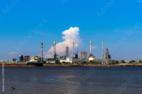 Oil refinery industry plant on blue sky at beside Chao Phraya river, Thailand.