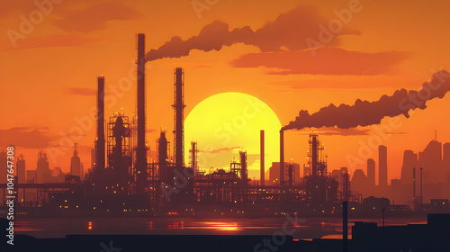 Oil Refinery Sunset Timelapse: Animation depicting an oil refinery at sunset, showcasing industrial beauty. -
