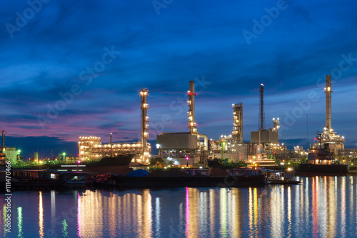Oil Refinery with blue sky in early morning in Bangkok, Thailand. Concept of Power and Fuel, heavy industry and environment.