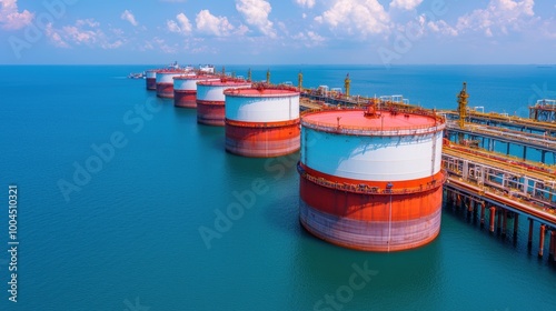 oil, storage, tank, ocean, landscape, industrial, port, water, blue, sky, dock, marin, infrastructure, cloud, environment, metal, seascape, facility, construction, platform, horizon, industry, coast, fuel, pipe, transportation, supply, energy, oilfield, refinery, machinery, maritime, coastal, view, aerial, shipping, transport, harbor, worksite, natural, scene, development, structure