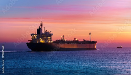 Oil Tanker Silhouette in Colorful Ocean Sunset