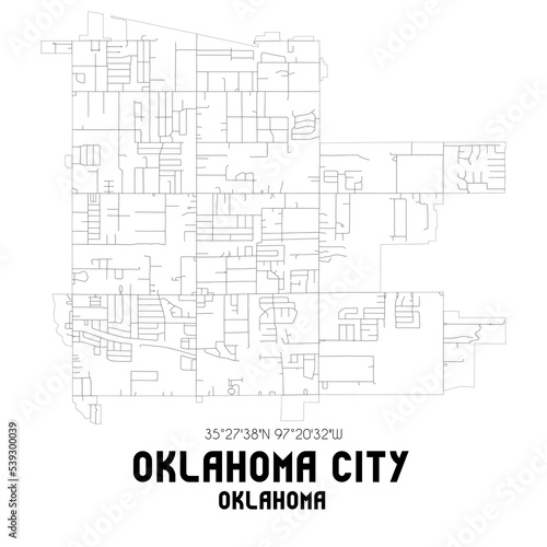 Oklahoma City Oklahoma. US street map with black and white lines.