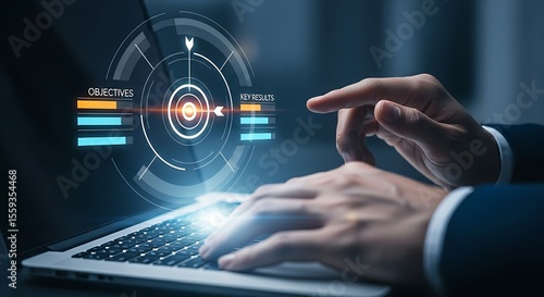objective, key, result, goal, business, concept, target, performance, success, strategy, management, progress, tracking, growth, hologram, interface