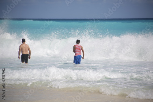 beach, sea, water, caribe, sand, summer, young, blue, coast, wave, heaven, vacation, children, couple, tropical, people, travel, surf, ambulatory, fun, landscape