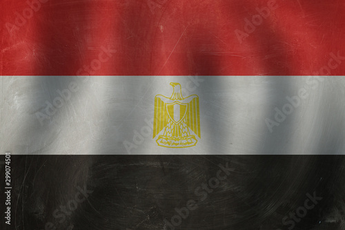Old banner with Egypt flag background. Egypt, travel and learn arabic language concept