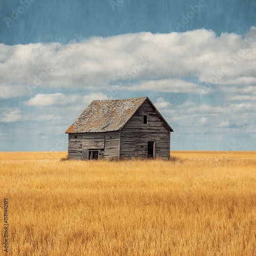 barn, racked, rustic, vintage, peaceful, rural, field, farm, sky, day